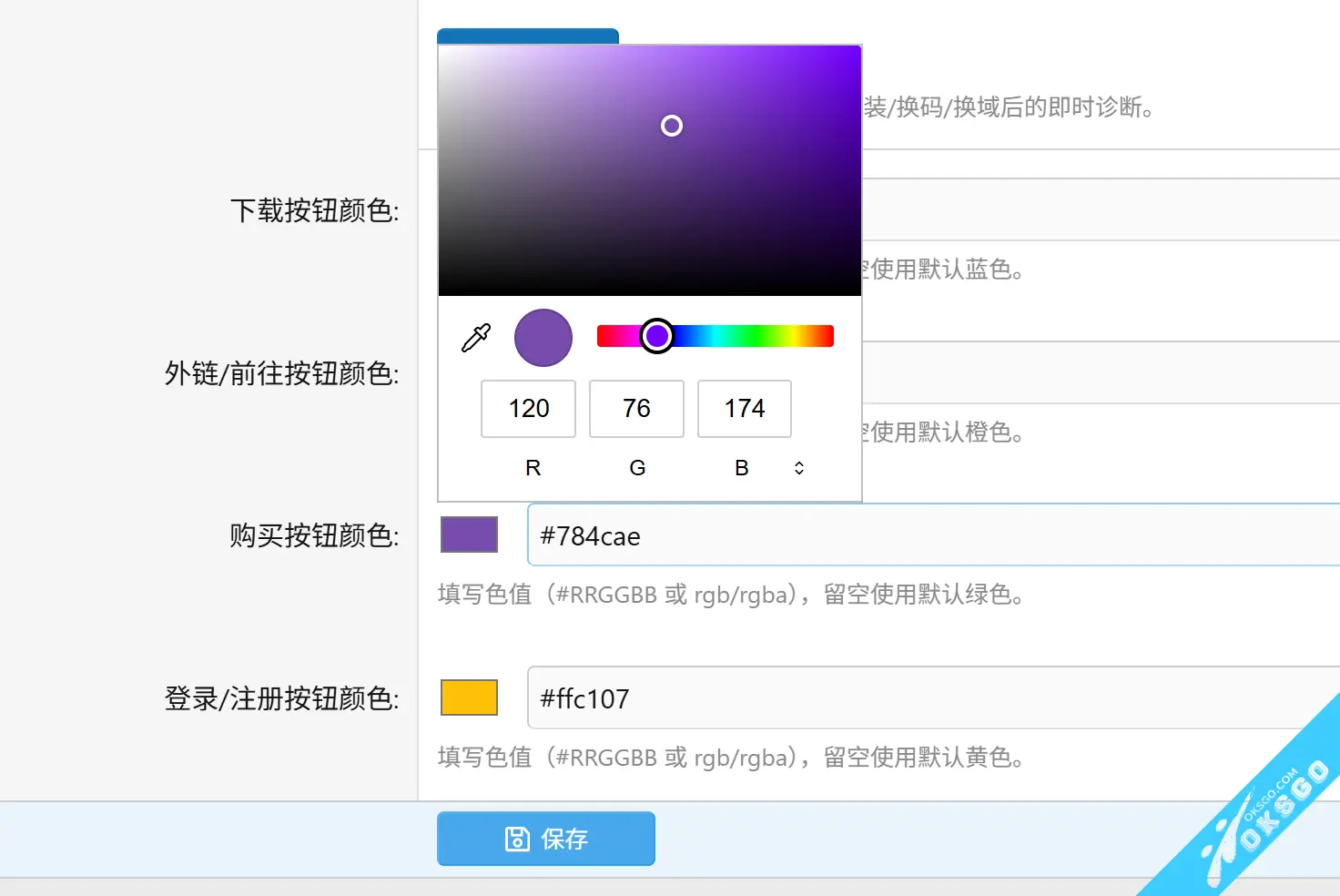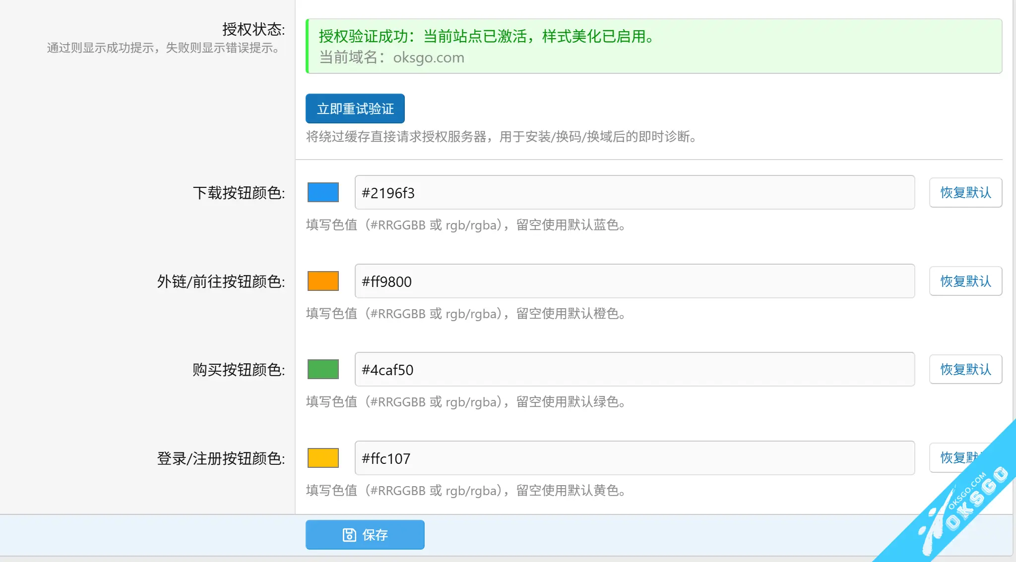 - 后台管理员可自定义按钮颜色