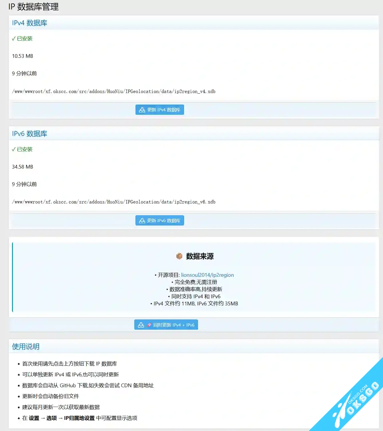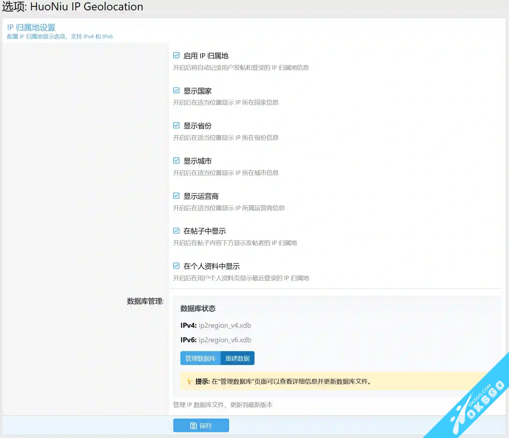 HuoNiu IP Geolocation 是一款基于 ip2region 离线 IP 定位库的 XenForo 插件,可自动显示用户登录和发帖时的 IP 归属地信息(国家、省份、城市、运营商)。插件完全离线运行,无需依赖第三方 API,查询速度快至 10 微秒级,支持 IPv4 和 IPv6 双协议。